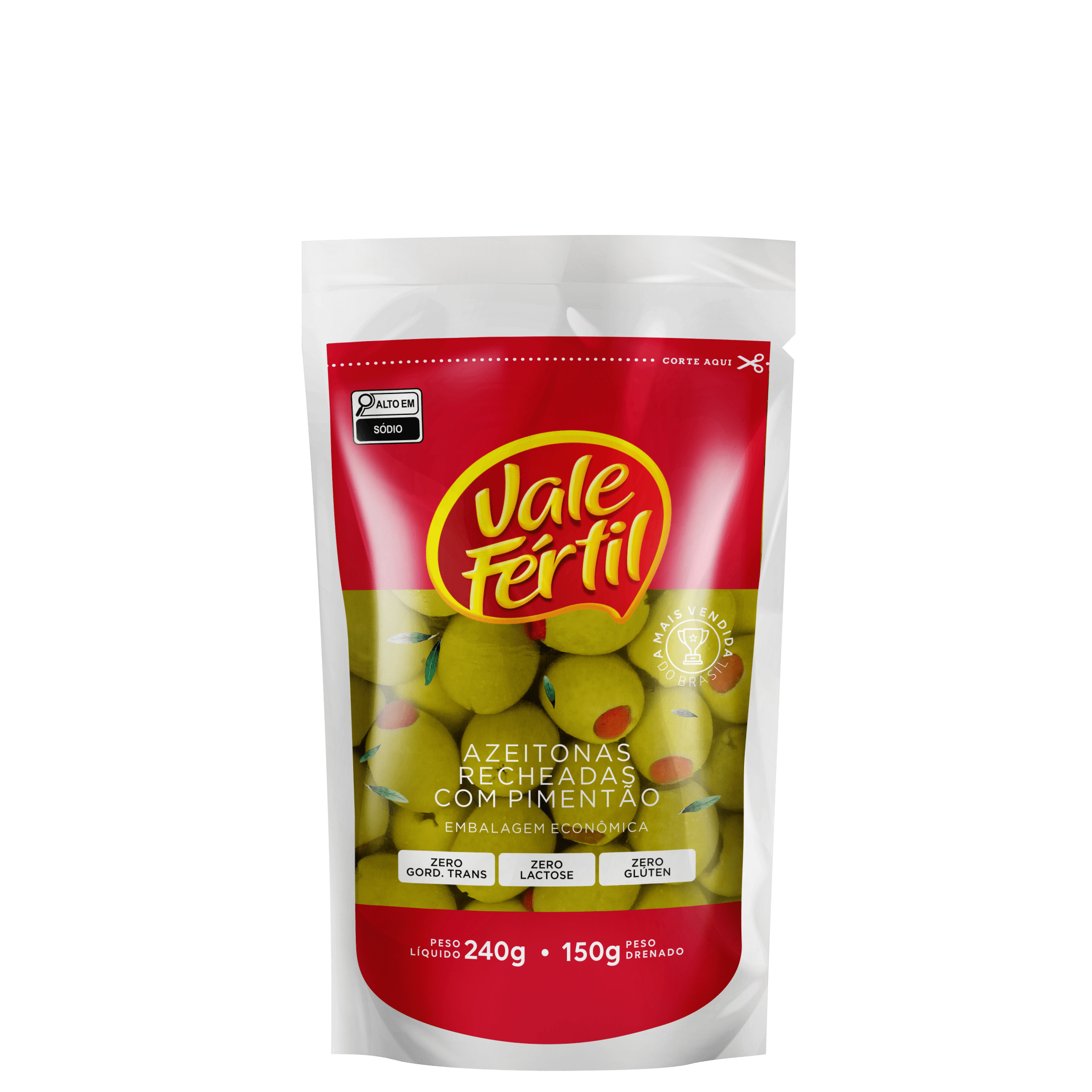 AZEITONAS VERDE RECHEADAS COM PIMENTÃO SACHÊ 150G VALE FÉRTIL.