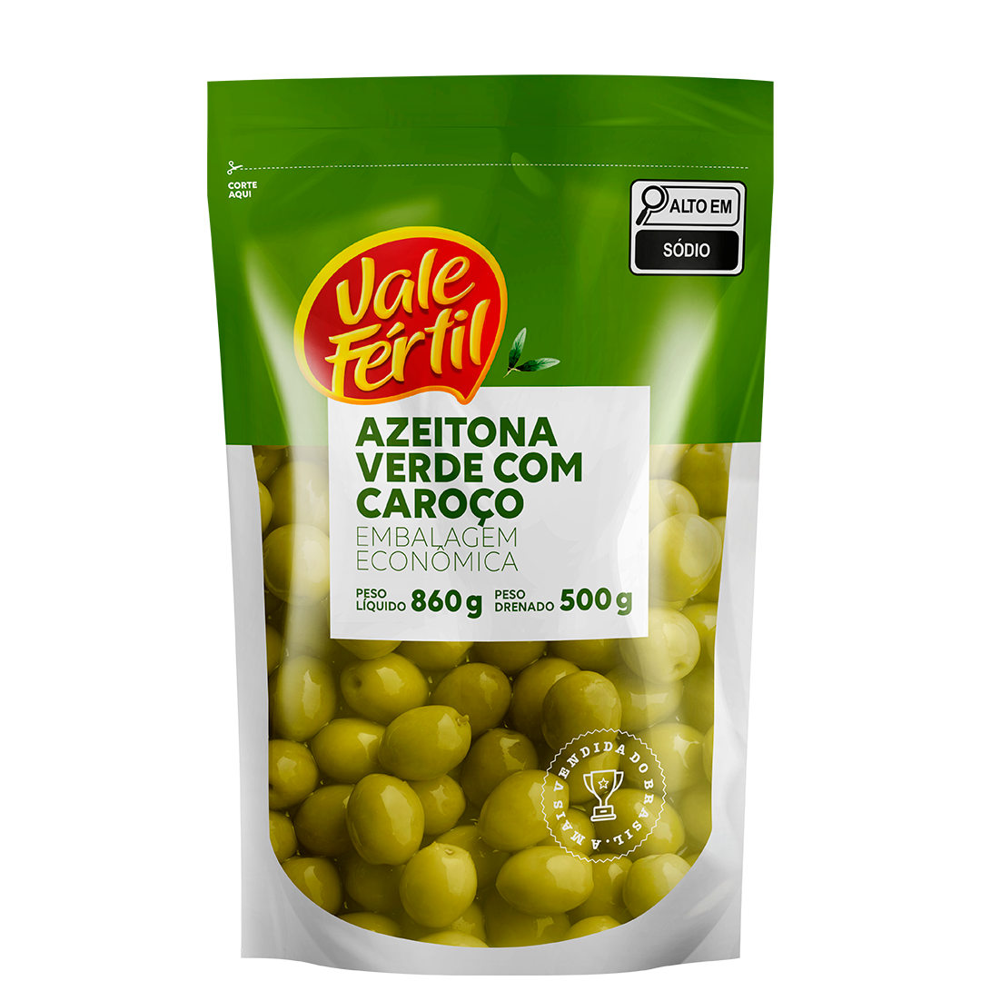 AZEITONAS VERDES COM CAROÇO SACHÊ 500G.