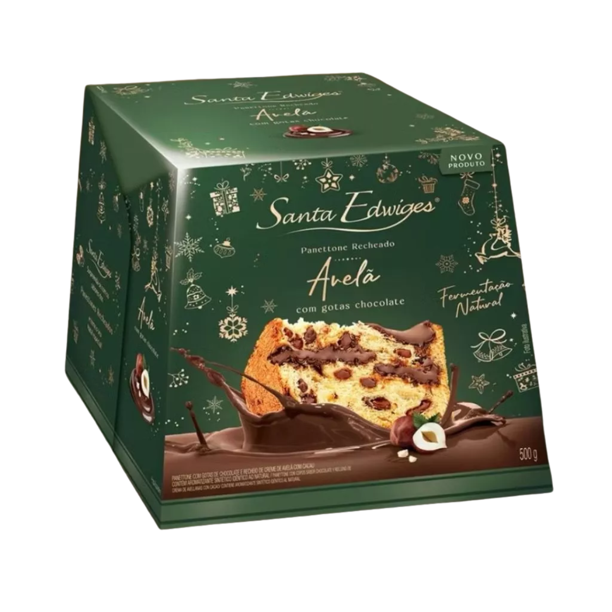 O Panettone com Gotas de Chocolate e Recheio de Avelã 500g é pura indulgência para os amantes de sabores intensos e sofisticados. Sua massa macia e aerada é cuidadosamente preparada e recheada com um creme de avelã irresistível, que se une às generosas gotas de chocolate para criar uma explosão de sabor em cada pedaço.