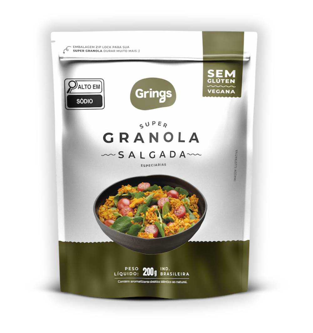 A Granola Salgada da Grings é sem glúten, sem lactose, vegana e sem transgênicos. A proteína de soja faz dela fonte de proteína, que ajudam no controle hormonal, na prevenção de diabetes e alguns tipos de câncer. Por conter castanha de caju é um alimento rico em antioxidantes e ferro, ajuda na prevenção da anemia, além de melhorar a saúde da pele, unhas e cabelo. Possui Ômega 3, presente na semente de abóbora, o que ajuda no funcionamento do cérebro, coração e diminui a inflamação do organismo. Possui gorduras boas presentes na semente de girassol, que ajudam a prevenir doenças cardiovasculares, como pressão alta ou infarto, além de ainda ajudar na perda de peso.